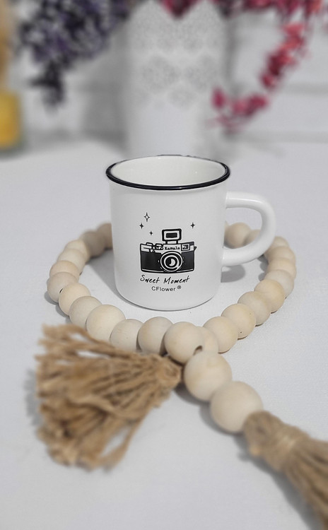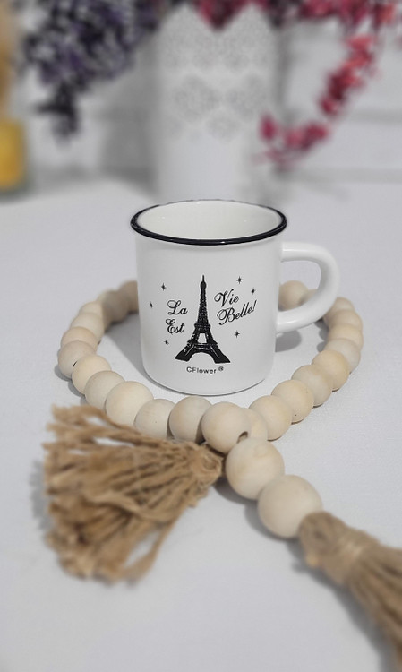 شات قهوه سرامیکی لبه دار مشکی فانتزی — وارداتی ضخیم باکیفیت (اسپرسو کاپ هنری)