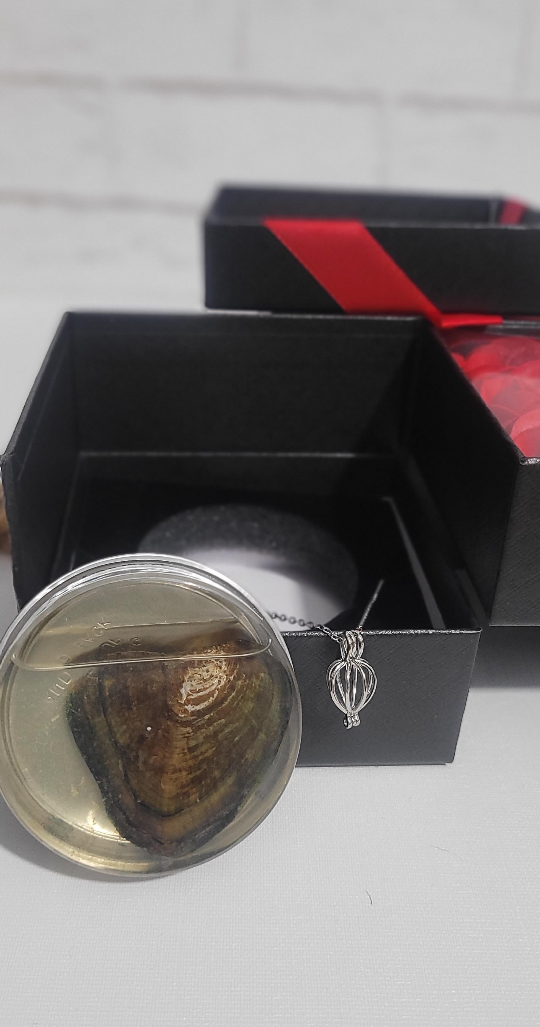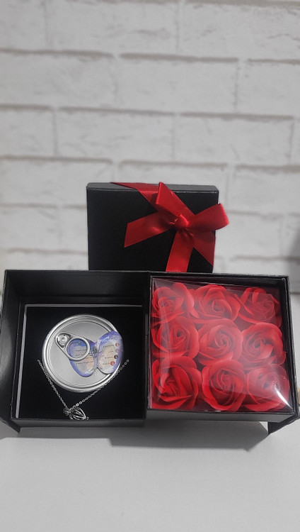 گردنبند مروارید عشق همراه باکس گل معطر و جعبه متحرک