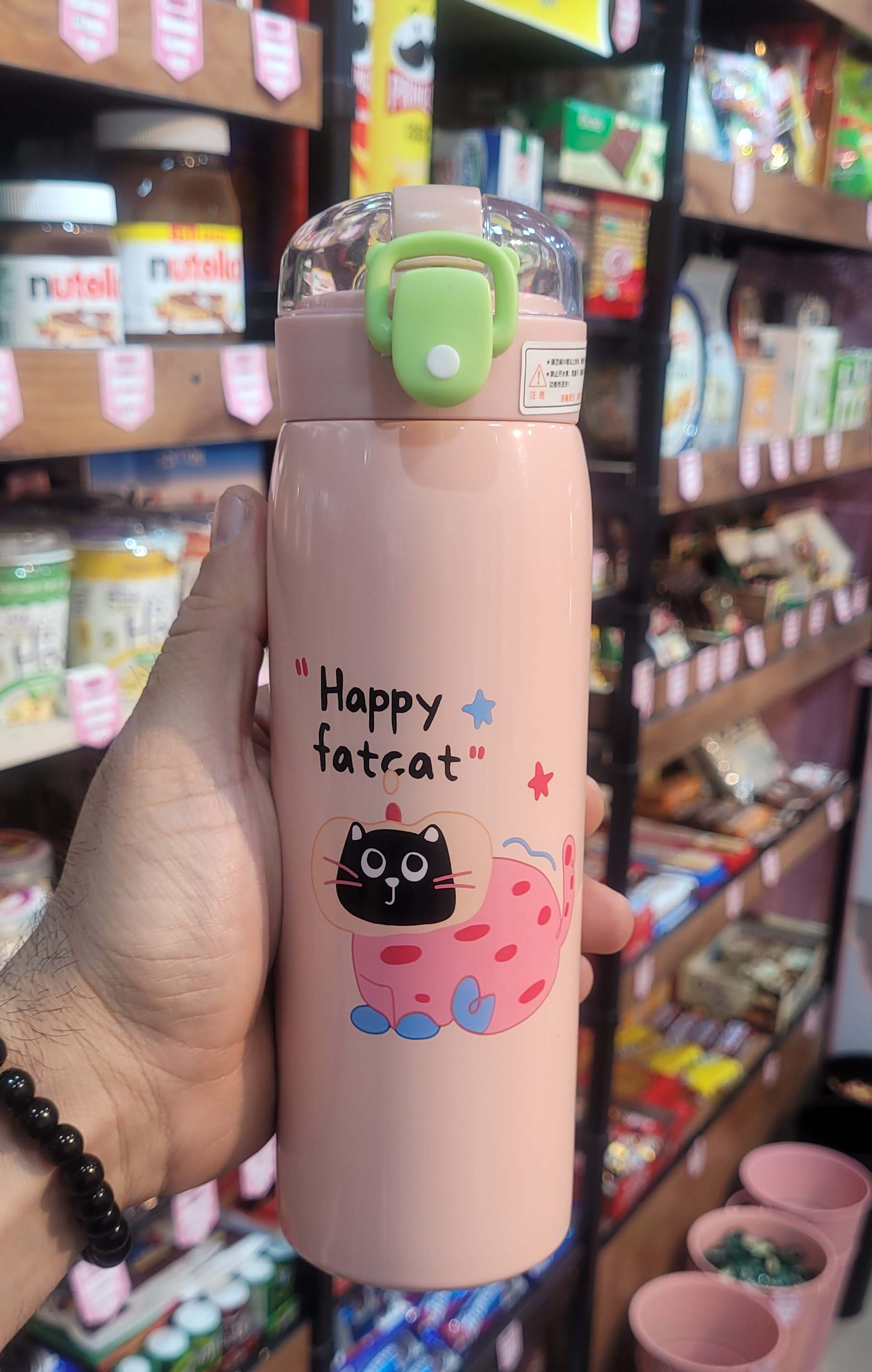 نیدار، دوجداره (حفظ دما)، درب دکمهای با قفل ایمنی، ۱۰۰% ضد نشتی، طرحهای کارتونی بامزه و جملات انگیزشی،قفل ضد نشتی برای جلوگیری از ریختن مایعات ،