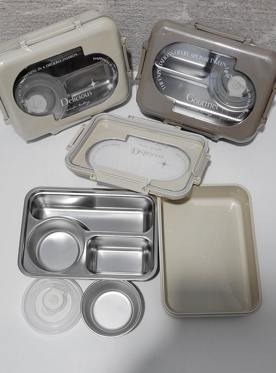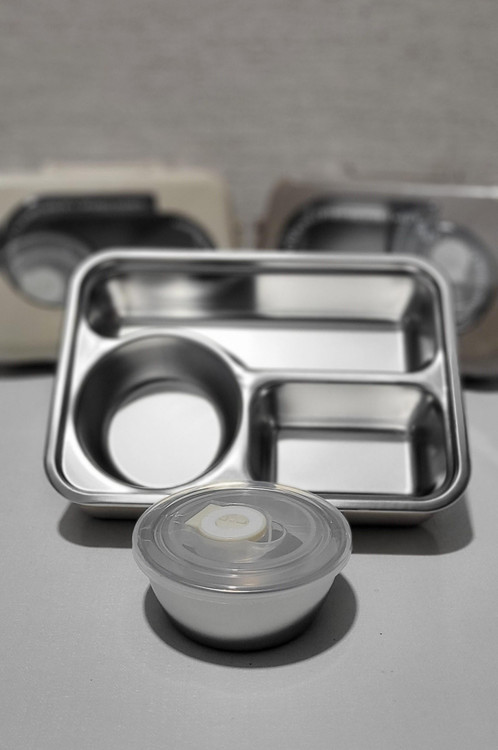 ظرف غذای ۳ قسمته داخل استیل کاسه دار